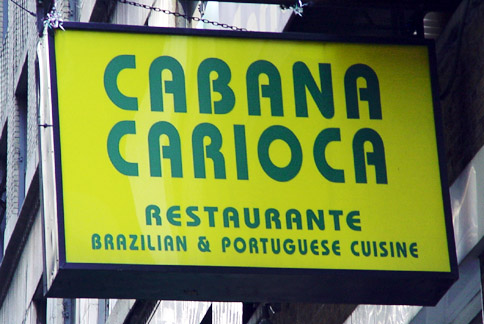 This being Little Brazil, there are obviously a number of Brazilian restaurants. These restaurants cater to different kinds of clients. Some offer low-cost Brazilian-Portuguese cuisine for Brazilians. For example, the Cabana Carioca offers an all-you-can-eat buffet featuring typical Brazilian dishes (rice, beans, ox tail stew, beef stew, fried fish, grilled pork, grilled chicken, etc), with the odd feature that their ground floor outlet offers the deluxe buffet at US$10.95 per person while the second floor walk-up offers the budget buffet at US$5.45 for essentially the same food. Other restaurants offer high-price Brazilian-Portuguese cuisine. At the Via Brasil restaurant, for US$25 not including appetizer, wine, caipirinhas or dessert, a couple can enjoy a feijoada, the national dish of a stew made of pig ears, tails, snout, tongue and hoofs combined with dried meats, sausages, slab bacon and salted pork, accompanied by kale, fried manioc flour, oranges and black beans on rice with a liberal sprinkling of malagueta sauce.