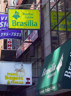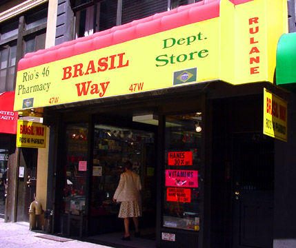 Little Brazil sits in the heart of midtown Manhattan in New York City. Usually, its boundary is taken to be the West 46th Street block between Fifth and Sixth Avenues. There is no large physical structure to denote its presence. Except for the proliferation of the yellow and green colors and a small street sign, it is indistinguishable from the other streets in the area.