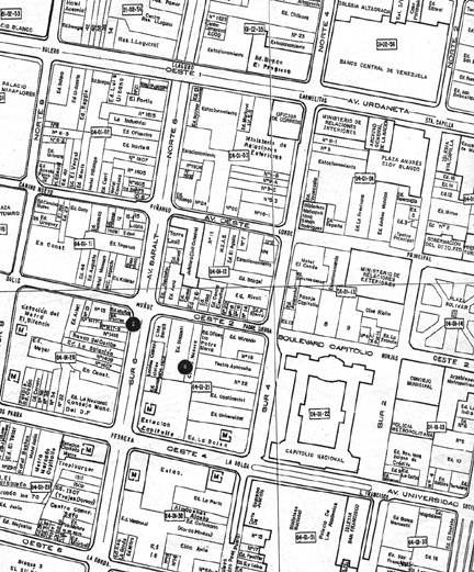 Abstractly, when such a procedure is prescribed, one conjures up the image of square city blocks. It is true that most of the towns founded by the Spaniards in Latin America followed a grid layout, with straight streets crossing one another at ninety-degree right angles. In some cases, these streets are given names that are just sequential numbers (e.g. calle 1, 2, 3 ... in the north-south direction and carrera 1, 2, 3 in the east-west direction). Such towns have a main square, around which the main administrative and religious buildings are situated, and the rest of the town expands outwards following the grid layout. The above map of a section of Caracas (Venezuela) is an example of square city blocks. When such is the case, the standard interviewer's instructions can be executed without ambiguity.