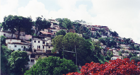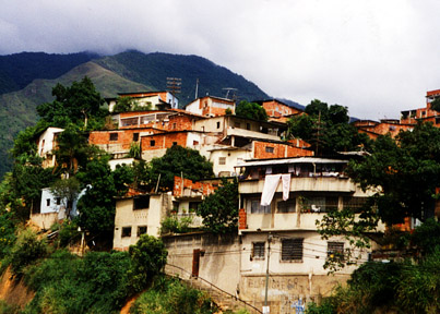 In the following, we show some photos that were taken of hillside barrios in Caracas. From a distance, some of these buildings resemble a house of cards, with one stacked on top of another. In most cases, there is no vehicular access to these houses and one must resort to walking up the serpentine paths that weave back and forth, inching upwards ever so slowly.