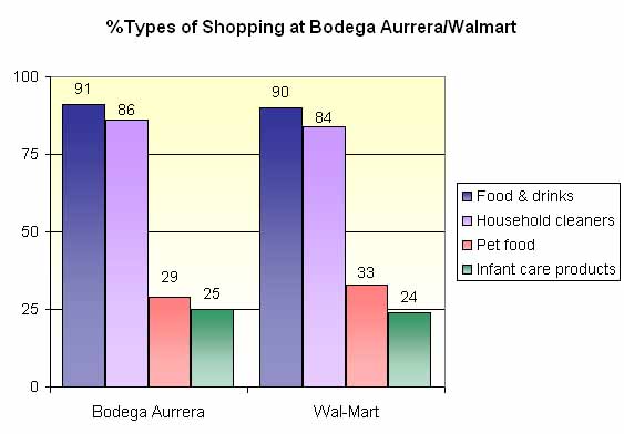 Notwithstanding the diifferences in socio-economic profiles of the customers, the types of shopping activities at Bodega Aurrera and Wal-Mart are nearly identical:
