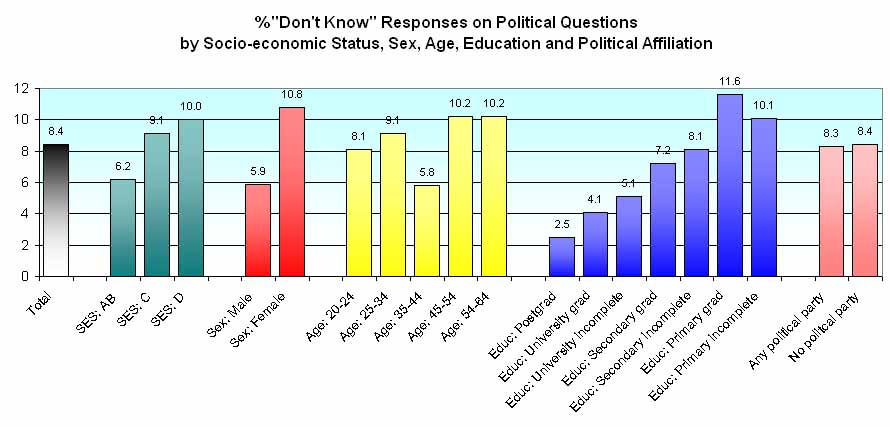 This was a provocative assertion that was just dying for an empirical illustration. We will now refer to some survey data from the 2004 TGI Brasil survey. Within this study, there are 4,402 persons between the ages of 20 to 64. During the survey process, they had been shown a series of statements related to politics and civics: