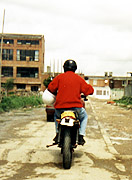 ![]() Motorcyclist on a bumpy road Bogotá, Colombia (photo credit: R. Soong) |