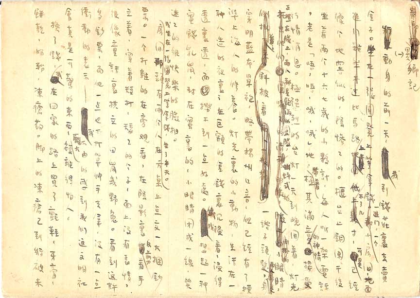 1.原稿經過塗改,隱約可見最初的題目是「異鄉如夢」。