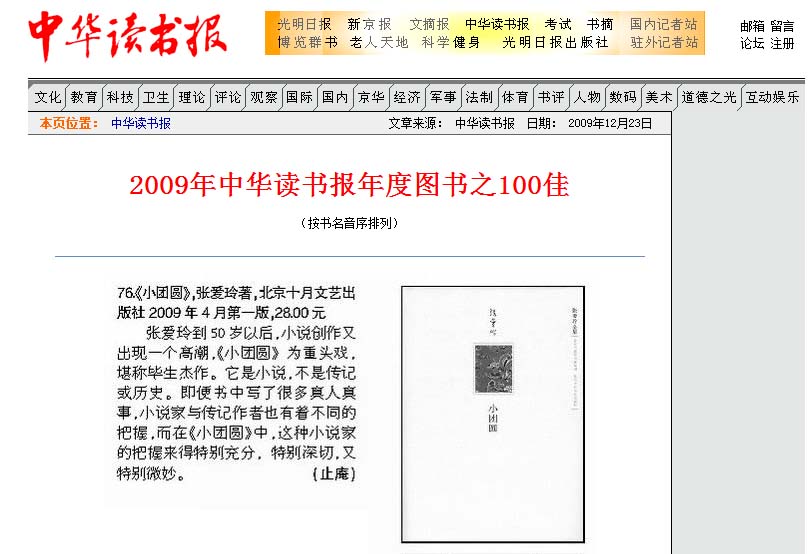 第二点,就是具体的张爱玲,我也觉得很难办。去年我还不知道《小团圆》要出版的时候,三联书店出了一本书叫《失落的书》,我写过一篇书评。这书讲的都是外国的事,中国就讲了孔子《乐经》这部经典的丢失。中国要写《失落的书》可以写一本书,我就讲到了《小团圆》。