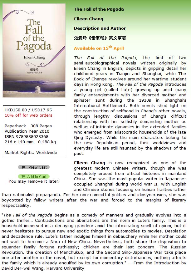 Chang's(1920-1995) English novel The Fall of the Pagoda¡m¹p峯¶ð¡non